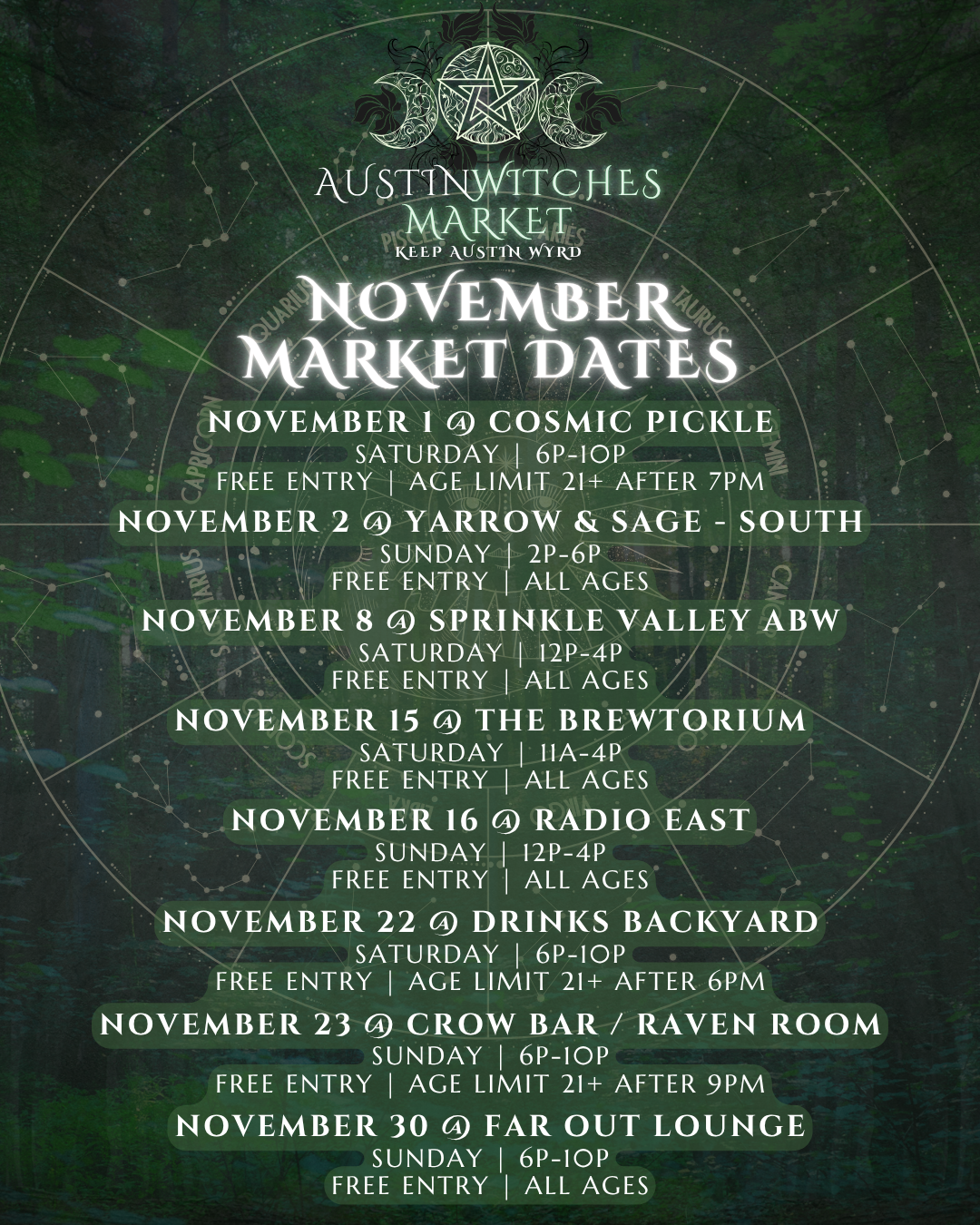Visit the Austin Witches Markets almost every weekend in 2025!